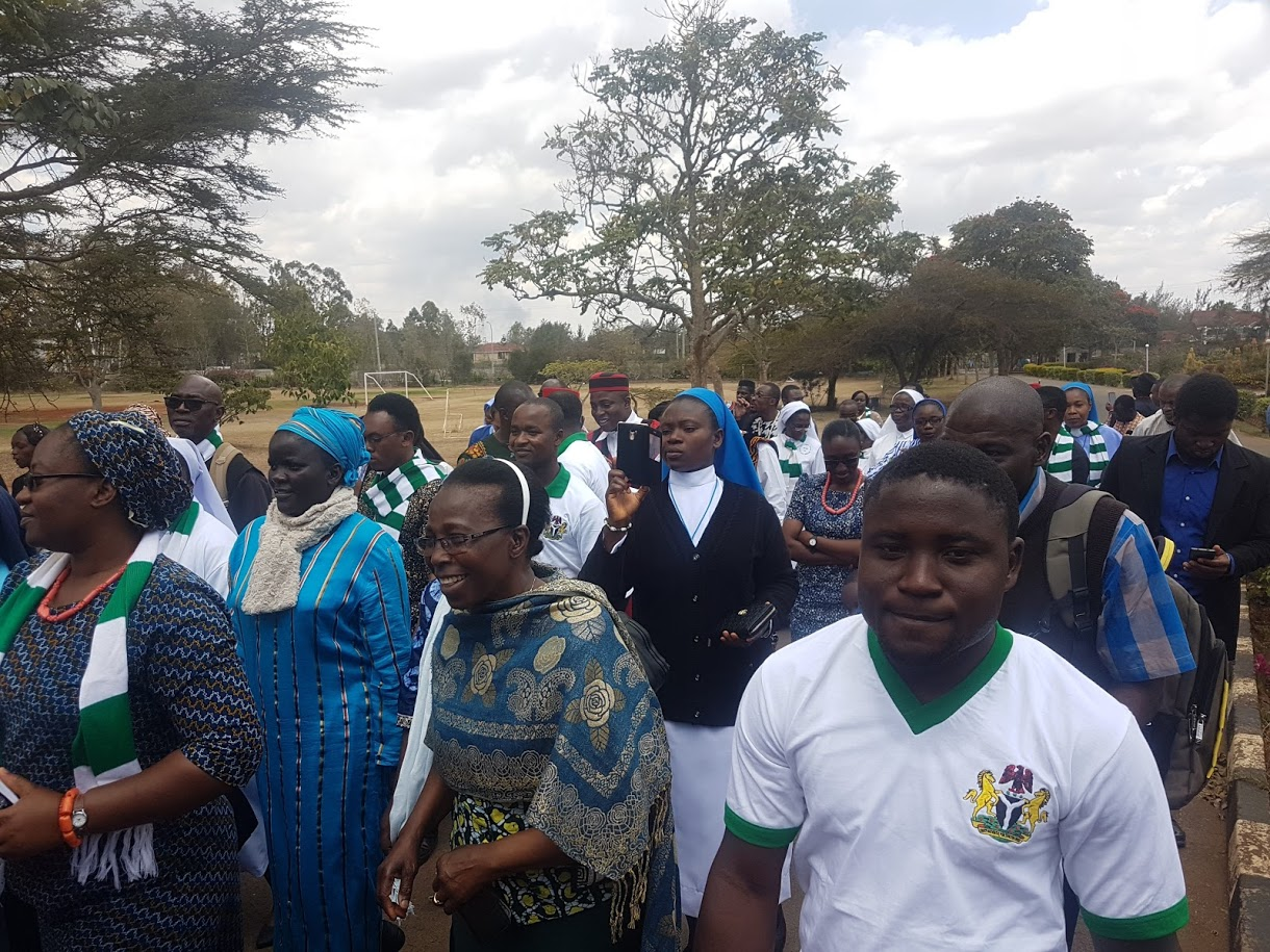 FROM L-R PROF STEPHEN MBUGUA(VC CATHOLIC UNIVERSITY OF EASTERN AFRICA), REV DR FRANCIS VERYE(PRINCIPAL MARIST INTERNATIONAL UNIVERSITY COLLEGE), REV DR JOYZY PIUS EGUNJOBI(AG.DIRECTOR, PSI)